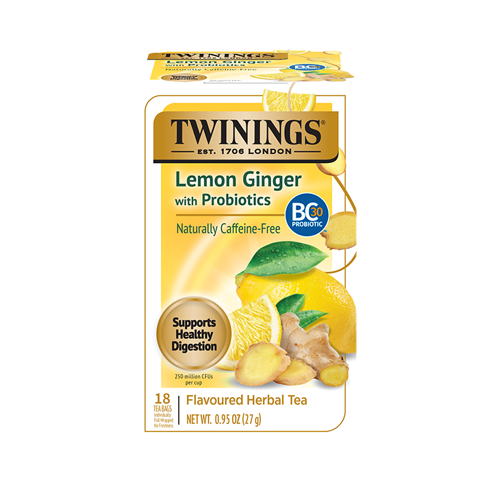 Soothe your stomach as you sip this herbal tea which combines zesty lemon flavour and warming ginger and includes a probiotic for extra digestive support.