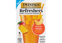 A box of 5 Peach Mango Refreshers herbal tea instant beverages, by Twinings. A naturally caffeine-free treat that’s convenient and affordable!