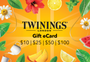 Give the gift of Twinings tea or other Twinings products! This eCard can be purchased in amounts of $10, $25, $50, or $100 and can be used on TwiningsUSA.com.